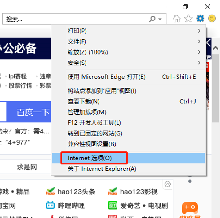 2、在工具选项下单击“Internet选项”。