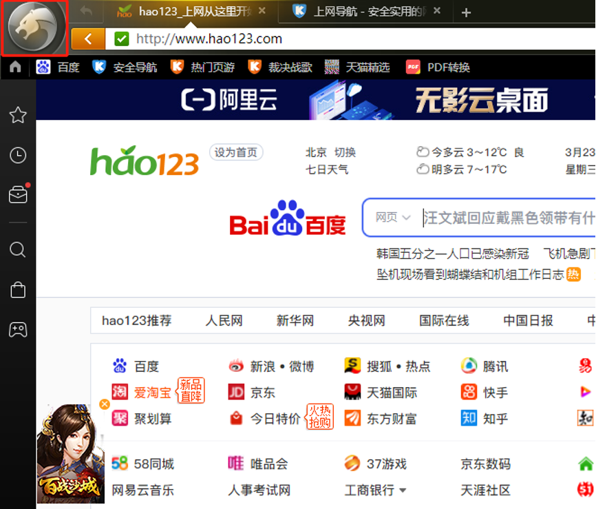 1、打开浏览器,点击左上角猎豹图标