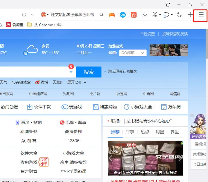 1、打开360浏览器,点击右上角的“打开菜单”按钮